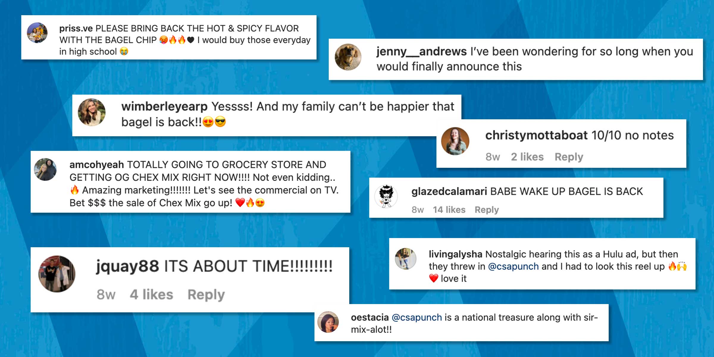 Fans flooded the comments section with praise for the resurgence of the beloved piece and we responded to both old and new mentions of the bagel chip.